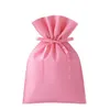 不織布ギフトバッグSサイズ 不織布ポーチサテンリボン付き マチ無し 100枚入り LC960 ピンク