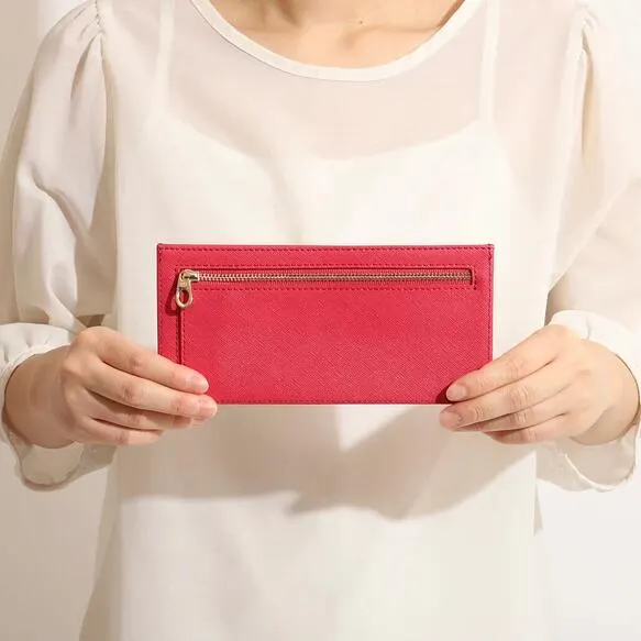 【薄さ × 収納力】 「最近流行りのミニバッグに収納できる薄さが欲しい」 「薄くて、しっかりお札や小銭も入る財布を探している」 そんなお声から、薄さと収納力を兼ね備えた薄型長財布を開発しました。薄さは業界最高峰の ”0.5cm” を実現。この薄さにもかかわらず、カード6枚、お札や小銭もたっぷり収納することができます。 週末のデートや1泊2日の旅行から、フォーマルシーンなどいろんな場面でお使い頂くことができます。 【使いやすい小銭ポケット】 薄型財布は「小銭ポケットがペタンコで取り出しにくい」というデメリットががありますが、本製品では「マチあり小銭ポケット」を取り付けました。 小銭ポケットの片側にマチを付けることで大きく開き、小銭の取り出しが楽にできます。 【素材にもこだわりを】 「お気に入りの財布を長くご愛用していただきたい。」 そんな想いから素材にもこだわりました。 数ある革の種類の中からキズや汚れに強い、本革を特殊加工したサフィアーノレザーを採用しました。表面に樹皮加工を施しているので、水や汚れもサッと拭くだけで簡単にお手入れすることができます。 忙しくて財布のお手入れをする時間が無い方でもキレイに保つことができます。 【スキミング防止機能付きでセキュリティも安心】 特殊な機械を使用し、知らない間にカードの情報を抜き取るという「スキミング」という犯罪が増えています。そんな悪質なスキミングの犯罪から、あなたの大切なカード情報を守るため、カードポケットにはスキミング防止機能を搭載しました。 カードポケットにカードを入れておくだけで、大切なカード情報を守る事ができます。自分の身は自分で守る時代、しっかり対策していきましょう。