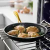 ノンスティック・セラミックコーティングが施され、熱伝導に優れたこびりつきにくいフライパンです。ハンドルが中空になっているので軽く調理やお手入れをしやすい点も嬉しいポイント。ブラックのボディとゴールドのハンドルの上品なデザインは調理後そのまま食卓にサービングするのもおすすめです。