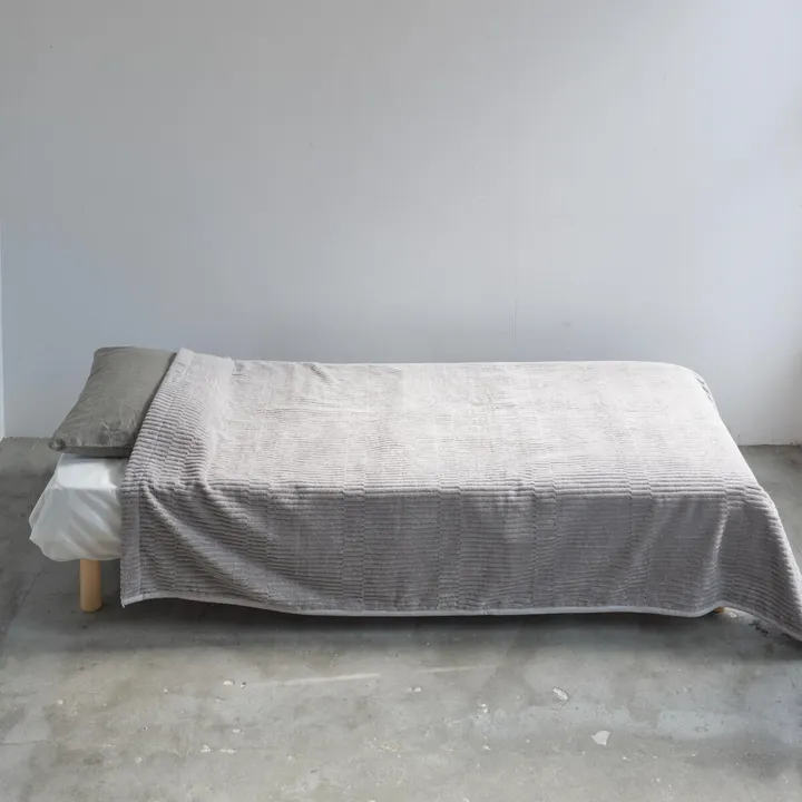 クールなルックスと、ふっくら・滑らかな肌心地。 <インテリア>のみならず、<建築>との親和性まで意識した コットンシール織毛布ブランケット 世の中の毛布がもっと天然素材になれば良いという思いと カッコいい毛布を求めて出会った高野口シール織毛布。 建築目線で似合う毛布はなかなかありません。 1年中使えるコットンは春夏はケットとして、秋冬はお布団と一緒に。嫌な静電気も起こらず快適です。 LOOM&SPOOLのタグには書き込めるスペースが設けられ、 使い始めの日付やお誕生日などを書き込め、ずっと長く一緒に過ごしてくれる毛布です。 (油性ペンをご使用ください) ■原材料・素材 パイル糸(毛羽部分)/コットン100%、地糸/ポリエステル65% レーヨン35% ■製造国・地域 和歌山県高野口 【注意点、お取り扱いについて】 ・お洗濯は手洗いでお手入れできます。洗濯機を使用する場合は洗濯ネットに入れ、 手洗いモードや弱洗いモードでご使用ください。 ・繊細な起毛の風合いを保護するため、柔軟剤のご使用をお勧めします。 ・洗濯機の毛布モードは使用できません。 ・使用中および洗濯中に毛羽が抜けることもありますが、機能的には問題ありません。 ・綿毛布は細かい毛羽が製品に残っており、はじめのうちは濃い色の服に細かい毛羽が付着することがあります。市販の固定式くず取りネットをご使用ください。 ・使っていくうちに若干毛羽立つことがあります。品質には問題ありませんが、決して引っ張らずにハサミで飛び出したパイルをカットしたり、ブラシで毛並みを整えてください。 ※画像はイメージです。