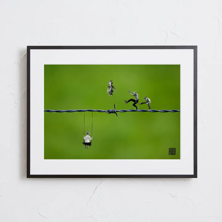 アーティスト -PROFILE- 藤本 麻弥 / Maya Fujimoto(マヤ フジモト) 2000年よりスペインの国境付近のフランス在住 リゾート地の観光局で広告デザイン全般を担当 人の価値観を変える事、さまざまな色や形で溢れ出る感情や世の中の傷、 生きる歓喜と哀しみのようなメッセージを表現したいと思っている。 主に雑誌の切り抜きや折り紙を使ったアナログコラージュ、 フォトショップを使ったデジタルコラージュを世界に発信する。 【作品について】 子供達が楽しそうに遊んでいる姿にほっこり。 でも、よくよく見る子供達の遊んでいる場所が... コラージュでしかあり得ない、コミカルな写真アート 作品名:危険な遊び 手法:写真、デジタルコラージュ ペーパー:高品質半光沢紙 マットカラー:白 マット*:DXホワイト芯 100%バージンパルプ/PH7・中性紙(2mm厚) ※全てのアートにマットがつきます フレームカラー:黒、白、無垢(3種類から選択) ※マット付のため通常とはフレームサイズが異なる規格となります。 【マット*とは?】 アートポスターの周りに挟んだ厚紙の事。 マットを使わない時に比べ余白により広がりが生まれ、作品の新たな一面を引き出せ作品の見栄えがグッと良くなります。また、額縁のガラス面と作品が直接触れたままにしておくと、くっついて作品を傷つけることがあります。マットを使用することでガラスと作品の間に空間ができ、作品を保護することができます。ブランドコンセプトにより全てのアートにマットがつきます。 ー ファッションのようにアートを ー 私達が掲げるコンセプトです! 毎日着替えるファッションの様に、アートも気軽に飾り変えて欲しい... 一旦飾り終えたアートにも光を当ててほしい... ポスター単体、またはリピートで中身だけのポスターを購入された方に"専用のハンガー"をセットでお届け。 「今までに無い!新しいアートの飾り方を提案」 飾る事がなくなった前のアートをハンガーにかけて洋服と一緒にかけてもらう。 その日の気分や、モチベーションですぐに取り換えられる様に。 もちろん、魅せる収納としても今までにないおすすめの飾り方です。
