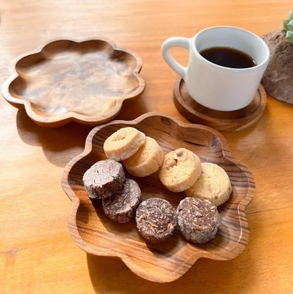 とても人気の高いバリ島の特産チーク製のお花型トレイです。安心の天然素材で作られた丈夫な食器になります!チーク材は古来より、高級家具や、ヨットなどの船舶の甲板材などで重宝された、水にも強く、耐久性の高い素材になります。天然の木材の温かみたっぷりで、使い心地や手触り、使い込んだ手への馴染みも良く、末永くご愛用して頂けます。ウレタンやラッカー塗装はしておらず、オリーブオイル仕上げになっておりますので、体にも優しく、自然の艶で高級感があります。量産品とは違う、手にして頂いた時の手触りの違いにご満足いただけると思います!ワンランクをお求めでございましたら是非お試し下さい!チーク材の独特な香りがする場合がございますが、洗浄して頂き、自然乾燥していただければ徐々に無くなります。自然木の木目の美しさを実感して頂けるお品です!食卓を一層おしゃれにします。サイズ:幅15cm 奥行き15cm 高さ2cm 材質:チーク 最善の注意を払っておりますが、ナチュラル素材でハンドメイドの為、色合い、大きさ等、多少異なる場合がございますが、ご了承くださいませ。