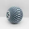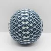 広瀬絣の藍染糸を使い、様々な幾何学模様を施したてまり。不思議な世界観があります。