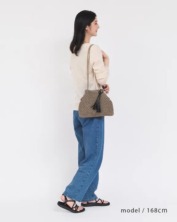 2パターンの持ち方ができる鹿の子編みショルダーバッグは、その日の気分に合わせて持ち手の形状を変えることができる2WAY仕様のバッグです。鹿の子編みは、表面に小さな突起ができるのが特徴で、目の詰まった編地です。鹿の子編みの模様が上品で、さりげなくおしゃれな雰囲気を演出してくれます。 【素材の情報】ペーパー素材とは紙のことで、紙繊維を糸状に撚ったものです。撚ることで密度が高まり、十分な強度を確保することができます。軽くて丈夫な素材で、帽子やバッグなど様々なアイテムに使用されています。紙は空気を通しやすく、通気性にも優れています。染色もしやすく、天然素材では難しい豊富な色展開や発色が可能な事も特徴の一つです。