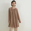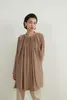 贅沢に施したギャザーたっぷりのブラウス。さらっとしたほんのり光沢感のある生地で、ドレープ感とふわゆれ感が程よいソフトな印象にしてくれます。お尻が隠れる長めのAラインカットなので、いろんなボトムとも合わせやすい万能アイテムです。 サイズ 着丈 バスト 肩幅 袖丈 ㎝ FREE 82.5 142 38 56.5 素材:レーヨン50% ポリエステル50% 透け感:ホワイトややあり 生地の厚さ:普通 光沢感:ややあり 裏地:なし 家庭洗濯:可能(ネット使用) 【注意点】 ※撮影商品はサンプルの為、実際の仕様と異なる場合がございます。 ※画像の商品は光の照射や角度、お使いのモニター環境により、実物と色味が異なる場合がございます。スタジオ物撮りの画像が実物の色味に一番近くなっております。 ※予約商品の場合、お届け予定はあくまでも目安となります。 生産の都合上、お届け時期がずれる場合がございますので、あらかじめご了承ください。 ※表記サイズは商品の実寸です。 ※布製品の特性上、サイズ表の実寸法は多少の誤差が生じる場合がございますので、予めご了承ください。 #ononesown#Aライン#ギャザー#ドレープ感#お尻隠れる#体系カバー#春ブラウス#長袖ブラウス#ギャザーブラウス#サステナブル