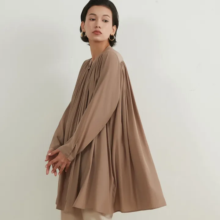 KNNC301長袖ロング丈ギャザーたっぷりブラウス MILKTEA/FREE