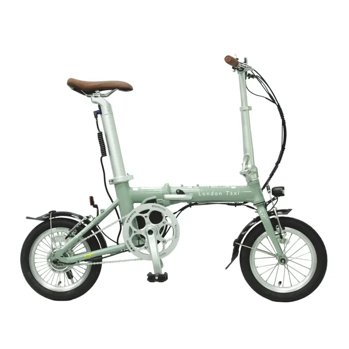 電動折りたたみ自転車 電動アシスト自転車 14インチ ミニベロ アルミ 軽量 シートポスト兼用バッテリー ジェイドグリーン