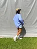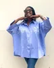 サバンナ オーバーサイズシャツ ブルー(白 ヤシの木プリント)
