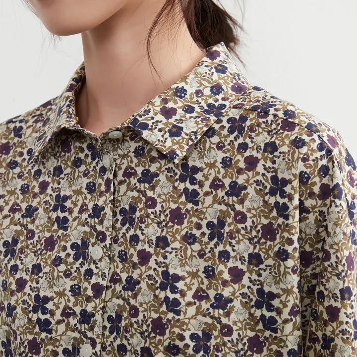 KNXC501・綿100%花柄プリント長袖ブラウス・スタンダードカラーシャツ・ナチュラル春秋トップス PRINT/L