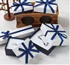 アクセサリー紙箱 リボン付きフェザーボックスシリーズ ピアス・リング・ネックレス切り込みスポンジ付き 12個入り 7342-REP ホワイト/紺リボン