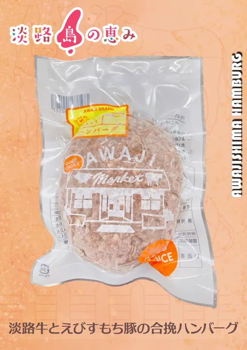 淡路牛と脂身の上品な甘さが特徴の えびすもち豚合い挽きにしたハンバーグです。