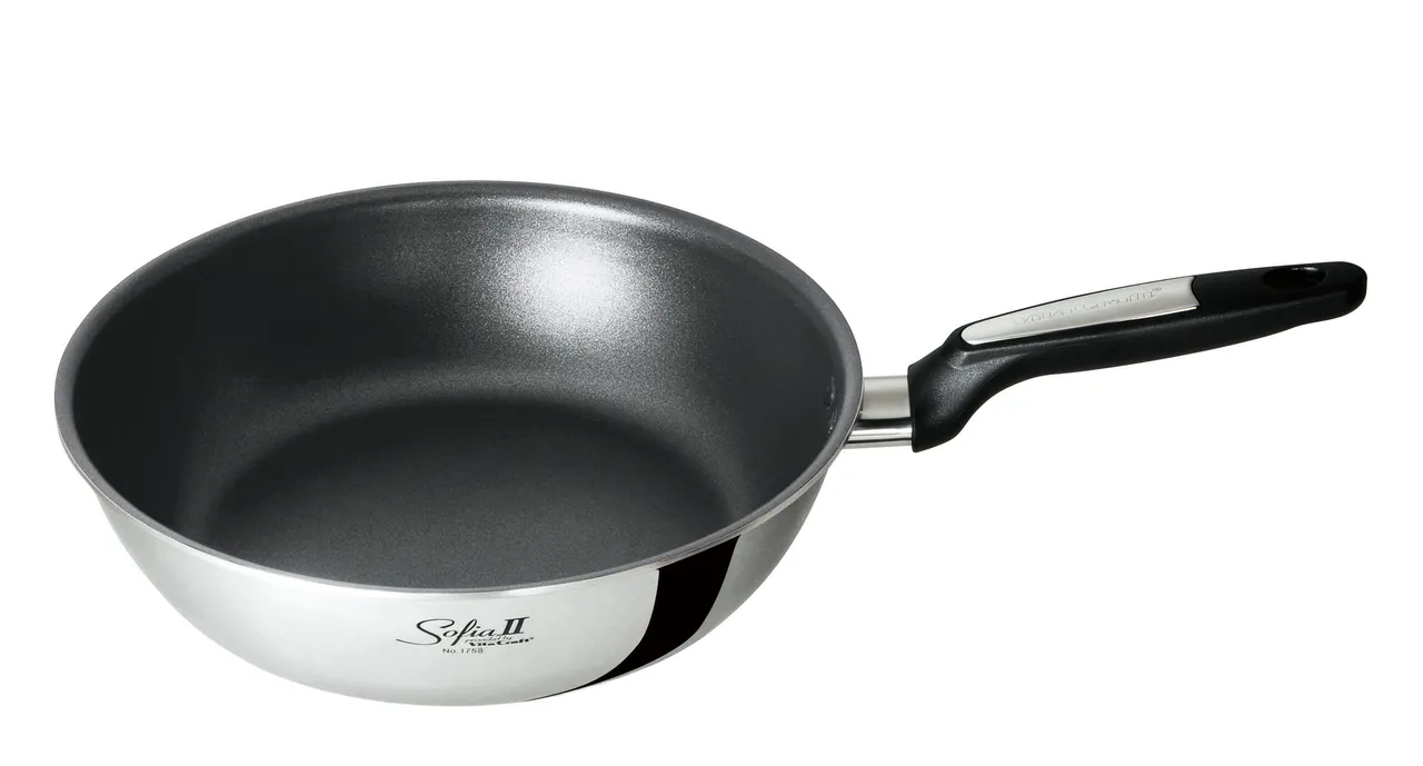 ステンレスとアルミの全面2層構造にナヴァロン3コート(高密度3層フッ素コーティング)と使いやすいハンドルを採用。IH対応でお求め安い価格も魅力