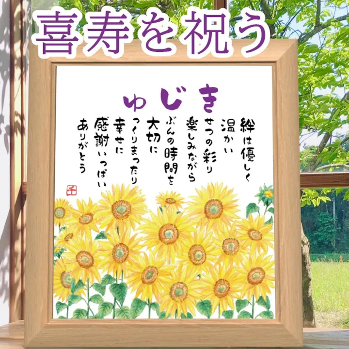 【詩絵(うたえ)】喜寿祝い 向日葵の絵とポエム 詩 ナチュラル額 お祝い ギフト 贈り物 プレゼント 77歳 誕生日プレゼント 感謝の言葉 詩入り