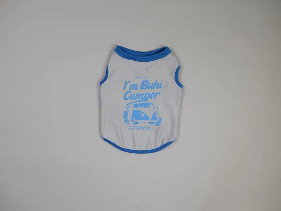 「フレンチブルドッグと一緒にキャンプを楽しみたい」 そんな想いから生まれたアウトドアデザインの犬服です。 フロントにはキャンピングカーとフレンチブルドッグのシルエットをプリントし、まるで“愛犬もキャンパーの一員”になったような気分を味わえます。軽量で柔らかな素材を使用しているため、夏のアウトドアシーンやお散歩でも快適に着用可能です。 ・誕生の背景 フレンチブルドッグは皮膚が弱く、日差しや汚れから守るためにお洋服が欠かせません。せっかくなら「機能性」だけでなく「楽しさ」や「遊び心」も込めたい。そんな思いから、フレブル専用アウトドアライン「Buhi Camper」が誕生しました。 ・使うシーン キャンプやBBQなどのアウトドア 海や川遊びのお出かけ いつものお散歩を特別にしてくれるデイリーウェア ・こんな方におすすめ フレンチブルドッグとのお出かけをもっと楽しみたい方 キャンプ・アウトドア好きなご家族 他にはない遊び心あるデザインを求める方 素材:ポリエチレン83%、ポリウレタン17% 機能:吸水速乾、UPF50+ 伸縮性:優良 *人間服だと 伸びの良いスポーツウェア程度 仕様:首&お腹部分ゴム入り