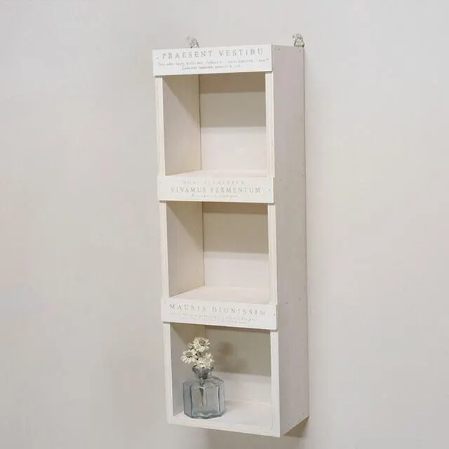 北海道 旭川市の自社工場で製作しています 3マスに区切られていて小物を飾るのにピッタリ。 どこにでも合うシンプルなデザインが◎。 軽くて画鋲でも掛けやすい。 付属の壁掛け用吊り金具付はドライバー1本で簡単に取り付ける事ができます。 ■商品サイズ 約 幅144×奥行92×高430mm  (板の厚みなどで、多少の誤差が出る場合があります) ■材質 桐材と合板を使用