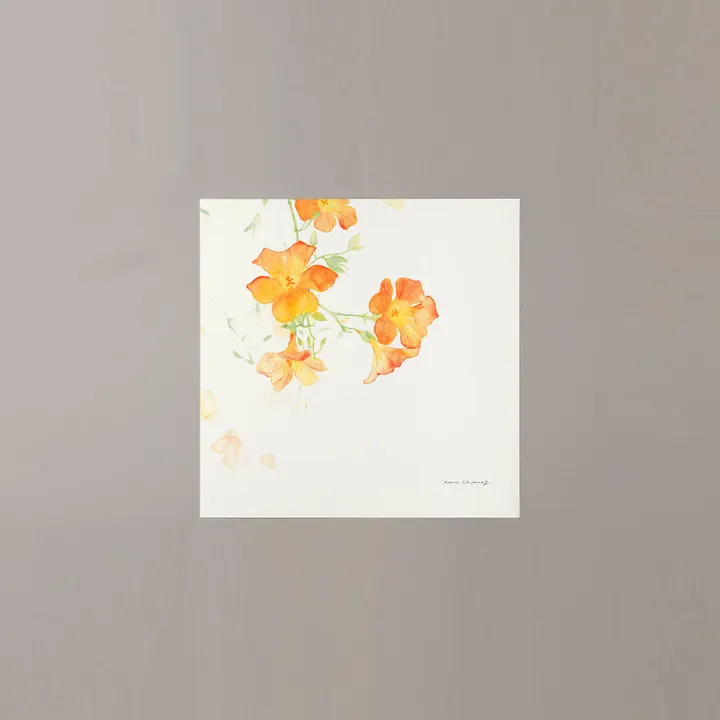 ※フレームは別売りです <デザイナープロフィール > 一柳綾乃(ayano ichiyanagi) 静岡県出身、在住。 グラフィックデザインを専攻し、絵描きとしての作家活動を開始。京都で伝統的な染色を学んだ後、「絵画を纏う」というテーマで布や服飾品を展開する。自然や植物をモチーフに、日々の暮らしの中から日記のように切り取って描かれた水彩画は、定期的に個展で発表されている。 <About the Paper> 発色の良さと紙の風合いという相反する性質を高いレベルで両立させた高級印刷用紙で、FSC認証※も取得しているヴァンヌーボV-FSの最厚紙を使用。 ※FSC認証とは「森林の管理や伐採が環境や地域社会に配慮して行なわれているかどうか」を評価・認証し、そうした森林に由来する製品(適正管理された森林木材による製品)であることを証明するものです。運営は、NGOであるFSC(Forest Stewardship Council®:森林管理協議会 本部ドイツ)が行っています。 <サイズバリエーション> ・200×200mm ・300×300mm