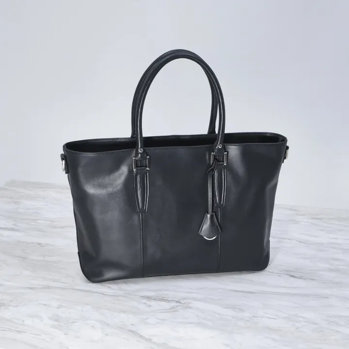 自然でスムースな風合い・手触りが魅力の、セミアニリン仕上げを施した銀面付きレザー。 大判なのにスタイリッシュな印象を与える、シンプルで無駄のないフォルムを追及したトートバッグ。ビジネスシーンで存在感をあげる、格式高い男性のレザービジネスバッグです。13インチまでのPCが入るホルダー付き。内側はジッパーポケットに4つの大きさが異なるオープンポケットがついていて小物の収納にとても便利な作りです。