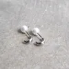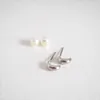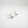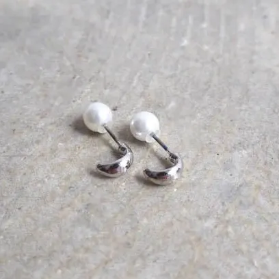 ピアス【Circle】/ロジウムミニC型フープ+パールキャッチピアス クリーンなシルバーカラーと 艶やかな貝パールの魅力を コンパクトなフォルムにぎゅっと閉じ込めたコレクション ピアスならではの独創的でしなやかなフォルムにこだわり、 バリエーション豊かなデザインを実現させたピアスコレクション。 Circle=輪 のように 日々や季節が巡るように、自然に身に着けたり外したりしながらも 長い時間が巡ってもいつかまた身に着けたくなるような 『暮らしに巡りゆくシンプルアクセサリー』が揃います。 ◆詳細◆ 小さなリーフのようにも見える、ミニサイズのC型フープモチーフ。 最小限のサイズにおさえた小さなモチーフは、ビンテージのパーツをアレンジして作成。 ぽってりとした太さやフォルムを大切にしながら、小さなサイズ感での表現にこだわった原型を作りました。 落ち着いたシルバーカラーを施し品良く仕上げたピアスには、アクセントとして貝パール素材のパールキャッチをプラス。 艶やかな貝パールキャッチは6mmサイズと主張しすぎない程良い大きさで 華やかさやきちんとした印象も添えながら貝パールの質感も存分に楽しんでいただけますので ぜひ、お手持ちのピアスにもお使いくださいね◎ また、着用画像9、10枚目のようにポストを耳の後ろから挿しパールキャッチを耳の表面で着けることで リバーシブルでもお使いいただけます。 耳元に心地よく収まる小ぶりでベーシックなモチーフながら、遊び心も備えた頼りになるひとしな。 イヤカフを始めとした、GDカラーのアイテムとも気負いなく合わせていただけますよ。 商品には専用のBOXが無料で付属しますので、ギフトにも最適です◎