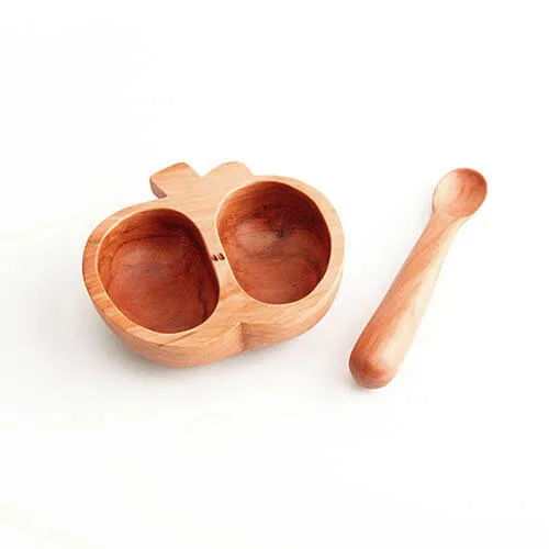 離乳食用の食器「りんごっこディッシュ」と離乳食用スプーンの「マッシュしゃじ」のセットです。 かわいいりんごの木のセットは出産祝いに喜ばれます。 りんごの形をママの手にフィットするように、スプーンは柄の部分を太くして赤ちゃんが自分でにぎる時期にも使いやすくしています。