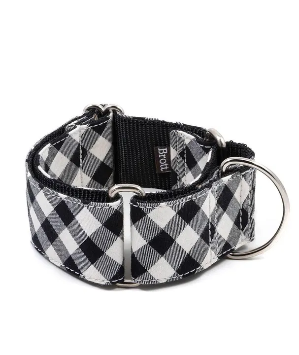 ブラックとホワイトのチェック柄の首輪は、トレンドセッターになるのに最適です。 白地に黒の小さな格子柄が組み合わさった、シェパードチェック柄。シンプルながらも、小技の効いた上品なデザインなカラー。? ? マーチンゲールカラー 幅が4cm、5cmと通常よりも広め。頭と首が細長く通常の首輪では抜けてしまうハウンド犬種に、特にぴったりのハーフチョークタイプです。 ハウンド系犬種以外でも幅広くお使い頂けます。頭からかぶせて着用するので、頭のサイズも必ずご確認ください。