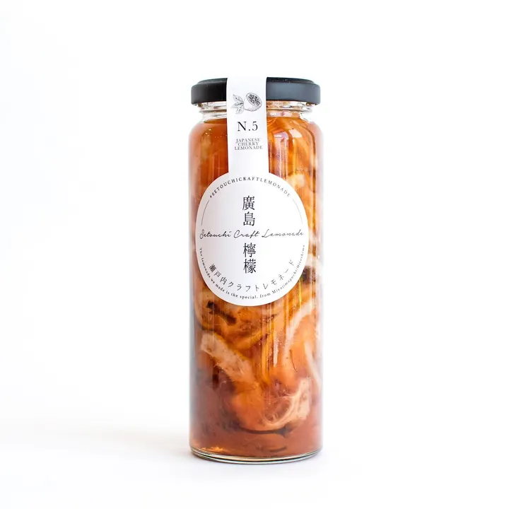 「食べる」クラフトレモネード【瀬戸内クラフトレモネード】の瓶詰め。(約5杯分) ◆八重桜クラフトレモネード 瀬戸内海に浮かぶ大崎上島産レモンと上品に香る国産八重桜が華やかなレモネードシロップです。 グラスに広がるはなびらは、繊細で華やかな和の雰囲気を演出してくれます。 お湯で割るのと、白ワインにもおすすめ。 【当店のこだわり】 大崎上島産レモンを使用した世界遺産の玄関「宮島口」で作るレモネード 1週間熟成/砂糖5種/余計なものはなし/無加水/保存料フリー こだわり抜いた広島の他にないこだわりのレモネードです。 果汁の5~10倍の栄養があるとも言われている果皮をまそのままお召し上がり頂けます。 とけるようにやさしい特別なレモン体験を演出、お湯や炭酸、ウイスキー、白ワインなどはもちろんアイス、ヨーグルトにも。 ◆瀬戸内ブランド登録商品◆ 原材料はレモン、蜜柑に砂糖5種のみ。余計なものは一切なし。 果汁の5倍以上の栄養素が詰まった「生レモンピール」入り。 使用する砂糖は腸内環境を整えGI値の低い甜菜糖やきび砂糖など5種をブレンド。 ※当店の無添加=保存料、着色料、香料、ph調整不使用。果実と和三盆などブレンド砂糖のみ(添加物ではありませんが八重桜のみ梅酢、食塩使用) そのまま食べたりするのはもちろん、他にもたくさんお楽しみいただけます。 【おすすめの楽しみ方】 ・糖水(シロップと果実)をソーダやお湯、お茶などに加えてお楽しみいただけます。(5杯分目安) ・アルコールにもおすすめです。ハイボールは特にご好評いただいております。 ・ケーキなどにも。レアチーズケーキやガトーショコラに加えていただくととても大人な雰囲気をお楽しみいただけます。 広島名産のお土産品、お取り寄せ品として。 ※弊社では商品案内のリーフレット、飲み方のレシピ、POP印刷データをご提供しております。 ご希望の方はお気軽にご連絡くださいませ。
