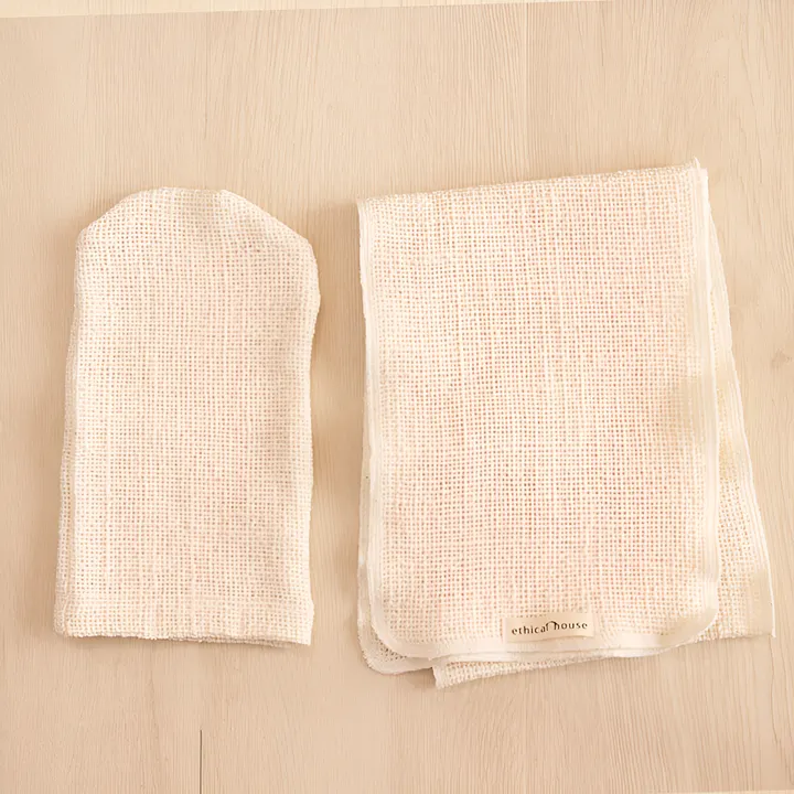 石鹸不要のボディタオル・ミトン。綿100%、水だけで皮脂汚れが落ちるボディケア(わたばなシリーズ) わたばなシリーズ ロング&ミトンセット
