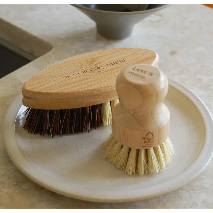 竹とサイザル麻で作られた100%自然分解可能なエコブラシ。以下の用途で使用していただけます。 ・お野菜の水洗い ・食器類の手洗い ・フライパンや鍋の手洗い ・キッチンのお掃除 ・バスルームのお掃除 ・お洋服 ・靴の手洗い 竹は3年で収穫できその成長の早さと、他の植物に比べCO2を多く吸収する役割からサステイナブルな素材として注目されています。 mana.では、素材や生産過程の背景にもこだわり、環境、社会、経済分野の利害関係者の合意によって支持された、責任ある森林管理の原則と基準に基づく国際森林認証制度FSCを取得したオーガニック竹を使用しています。 ※自然素材なため、色や木目が画像とは少し異なる場合がございます。