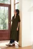 KNSO351-スキッパーカラー半袖ワンピースwith裾スリット OLIVE/M