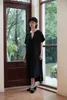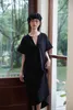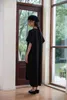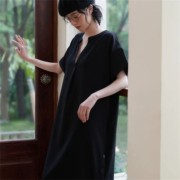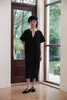 KNSO351-スキッパーカラー半袖ワンピースwith裾スリット BLACK/M