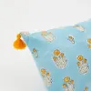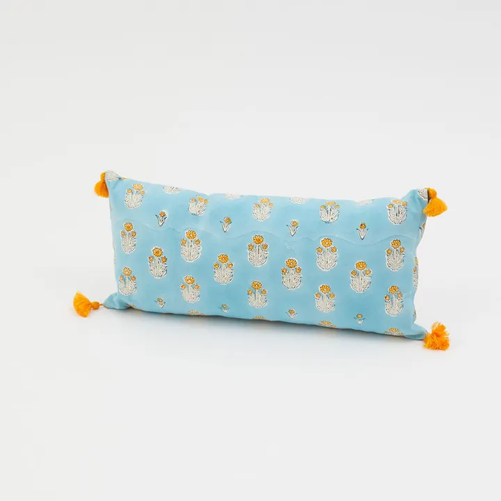 クッションは、手軽にお部屋の印象を変えられるアイテムです。 背クッションがないソファと相性の良い小さめのクッションは、コーナーにポイントとしてタッセルを付けています。 ソファに座った時は、腰のあたりに置くと気持ち良くてリラックス効果が期待され、膝の上にのせれば読書やスマホ操作が快適にできます。 **BLOCKPRINT** ブロックプリントとは 木彫りの版でハンコを押すように1柄ずつ1色ずつプリントされたものです。 まずはアウトラインとなる柄のスタンプを押していき、その後色をのせていきます。 使われている色の数だけ、作業は複雑になっていきます。 全て手作業の為、染めムラやスタンプの境目などが少し出ていますが それがブロックプリントの良さでもあり、風合いとなっております。 機械化が進むこの時代にこの風合いをぜひお楽しみ下さい。 【インテリア】【ブロックプリント】【ボタニカル】
