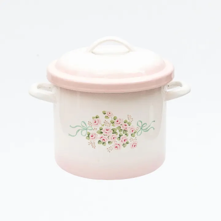 ふんわりピンク色の吹きが可愛いエマののライス缶は見ているだけでやさしい気持ちになれるお気に入りのインテリア。お米やキッチン周りの食材、ペットフードやお掃除用品などお好みの場所のストッカーに。匂いがつきにくいほうろう製なので中身を入れ替える時も安心です。また、IH・直火対応なのでお鍋としてもお使いいただけます。 【ホーロー(琺瑯)の特徴】 金属とガラス、全く違う素材を結合させたホーローはそれぞれの良い面が生かされ、「ホーローならでは」の優れた特徴があります。 ・優れた耐久性、耐熱性、耐酸性 ・においが付きにくく抜群の非吸着性、清潔感 ・高い保温性で熱を逃さない ・美しい色合いと光沢が魅力 ■商品について イマンの商品はアンティークのような柄をほどこしている手作りの商品になります。 手作業で一つ一つ丁寧に柄つけておりますが、角度や位置等に若干の差がございます。 ※本商品シリーズは下地は中国国内で、絵付けから仕上げまでの完成過程を日本国内で行った商品です。 ■ホーロー製品 対応熱源:ガス ※電子レンジ不可 ※加熱中や加熱直後は取っ手やフタが大変熱くなり火傷の危険がありますので、必ずミトンやふきん等のご使用をお願いします 【下記の場合は不良品ではありませんのでご注意ください】 ・ホーローの溶接部分や縁などに出る黒い部分は下地のホーローです。この部分はホーローがかかりにくいためこの様になります。 ・ホーローを焼く時に吊るすため、吊るしたあとが残る場合があります。 ・焼く際に細かな黒い点がつく場合やピンでつついたような小さな陥没がある場合もございますが、ご了承の程お願いいたします。 ■撮影環境の関係上、実際の色と多少異なる場合があります。 ■販売商品以外のアイテムは付属しません。