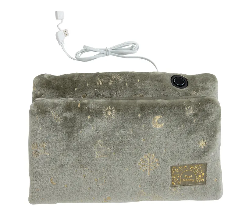 なめらかな手触りのフランネルとあたたかなボアで、うっとりするような夢見心地に。 厚みのあるフランネルとゴールドの箔プリントが人気の冬の定番防寒シリーズに今期は新たにUSBウォーマーが加わりました。 今年の柄はキルティングのようなライン模様を忍ばせてみたり、例年よりも柄の密度が高く、キラキラした箔プリントの特徴がより分かりやすくなっています。 程よいクッション性のあるシート状マルチウォーマーには発熱シートが2枚内臓されているので、開いたり、二つ折りにして、いろんな場面でご使用いただけます! USBコード仕様のため、お家だけでなくオフィス使いも気軽にできるのがうれしいポイントです。 本体に付いているボタンで操作できるのは3段階の温度調節のみ。自動OFFタイマーは2時間の固定ですが、安心の機能付です。 手先足先が冷えるときは、二つ折りにして両端のスナップボタンを留め、横の隙間から手を入れればハンドインクッションに。足元に置いて足先をすっと入れればフットウォーマークッションになります。 広げると膝元や座面、腰など広範囲に温めることができます。 下から冷えるオフィスで大活躍間違いなしです! 使用しない時はコードをコンパクトに収納できる、ファスナーポケット付き。ここにモバイルバッテリーも収納しても良いですね。 電源:USB(TYPE A) 電圧:DC5V コードの長さ:約1.3m 温度調節4段階:40℃/45℃/50℃ 自動OFFタイマー:2時間 ※2時間以上の連続使用はできないようになっていますので、自動OFF後に続けて使用する場合は再度電源を入れてください。 【注】発熱シート内蔵のため洗濯不可