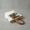 人気の国産シリーズでA4サイズも収納可能なキャンバストートバッグが登場です。 メインの素材には9号の帆布を使用している為非常に軽く、丈夫に仕上がっています。 またカジュアルになりすぎないよう持ち手などには牛革が使われており、使えば使うほど深みが出るので程よい高級感が漂います。 *********** 【素材】 ・本体:9号帆布 ・附属:牛革(天然シボレザー) ・内装:コットンツイル 【サイズ】 ・約:幅:40 x 高さ:32x 奥行:14㎝/重量 540g 【ポケット】 ・外装:前側ファスナーポケットx1/後側ナシ ・内装:前側ポケットx1/後側ファスナーポケットx1 【ストラップ長】 ・なし 【生産国】 ・日本 【革についての注意点】 天然の革を使用しているため、表情、色に個体差があります。 商品の個性として、あらかじめご了承願います。 【MahL+81 ものづくりへの想い】 MahL+81 はバッグ製造メーカー・丸富商会のオリジナルブランドです。