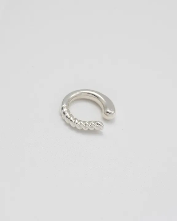 "Duality" series コミュニティごとや関わる人によって変わる人間の多面性を表現。 先端に向けて太くなっているシンプルなサイドと、ねじりになっているサイドの2サイドから成るイヤーカフ。 どちらを前にしても着用できるデザインとなっています。