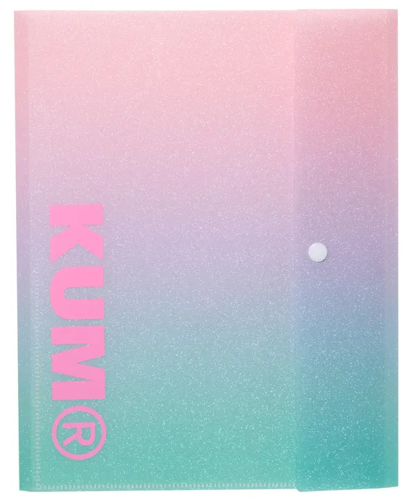 【キラキララメのグラデーション】 (両面A4ファイル)プリントの収納に便利、取り出し口の角がカーブになっているので出し入れしやすい仕様です。 (マチ付きポケット)ノートやルーズリーフなどの厚みのあるものの収納に最適。 (ミニポケット)筆記具や付箋を一緒に持ち運び可能。ホック付で中身が飛び出ず安心。