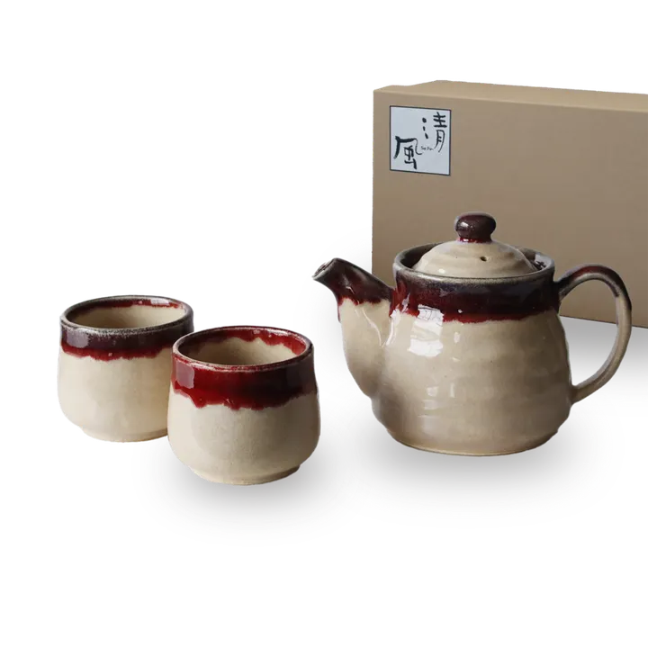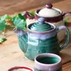 辰砂と呼ばれる特別な釉薬を使用し、幻想的な色合いを生み出します 釉薬の調合、重なり、焼き上がりによってその瞬間にしか出来ない表情を見せてくれます 窯変の美しさや個性を堪能できるアイテムです ポットや急須として、シーンによって洋にも和にも馴染みます お茶の時間をゆっくり楽しむことができる和ポット茶器セットです