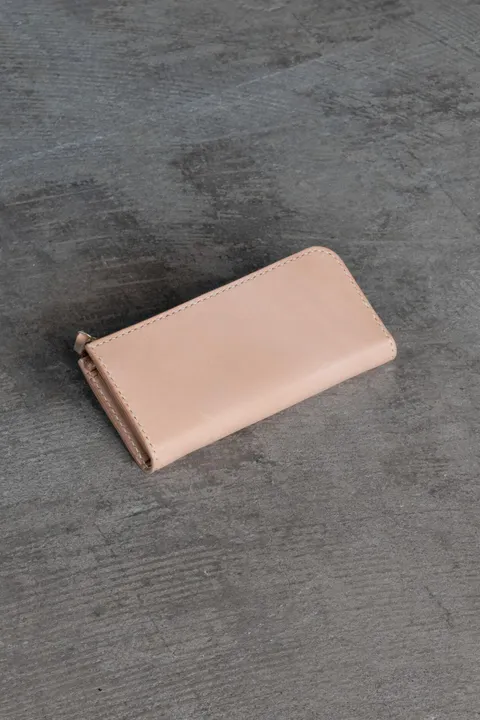 人気のL字ファスナータイプです。 革の表面に凹凸のないスムースなオイルレザーです。革に張りがありしっかりとした質感。 こちらの革を揉んで加工した、凹凸ありのタイプはこちら https://minca.base.shop/items/12182166 ラウンドタイプと比較してタテの長さをやや抑えることでコンパクト化。 小さめバッグやポケットなどにも収まりやすく、女性でも持ちやすいサイズ感となっております。 ファスナーは最高級モデルYKKのエクセラを使用。 内装にはグレイジングレザーを使用。芯材を用いず、一枚革でソフトに仕上げました。色合いは生成りなので、内側が明るく内側が見やすいのもメリット。 紙幣にはオイルがつきにくく、綺麗にお使いいただけます。 Material:表革 Oil leather / 裏革 Glazing leather Size:H92 × W197 × D20mm カードポケット×8、札入れ×2、フリーポケット×2、小銭入れ×1(片側マチつき)