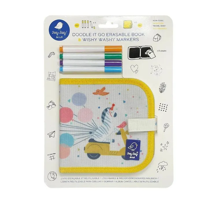 何度も消して描けるチョークブックミニ。水性マーカー4色付属。