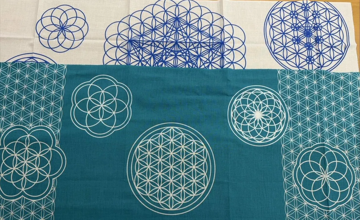 フラワーオブライフ 波動効果日本手ぬぐい 色は、 浅葱色に白色です。 こんなものがあったらいいな。 と自分で使いたいので、フラワーオブライフの波形を日本手ぬぐいにプリントしてみました。 予想以上に 気持ちいいものができました。 首に巻いたり 頭に巻いたり 枕の下に敷いたり もちろん、お部屋に飾ったり。 フラワーオブライフの波動に包まれる優れもの。 手ぬぐいをお水の下に敷くと、味が瞬時に変わります。 使い方は♾️大 楽しんでくださいませ。 数に限りがあります。 ※ご使用なさる前に軽く水通しをしてからお使いください。(すぐ乾きます) ※色落ちする場合がございます。(乾燥機にかけるのはおやめください)