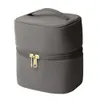 「メイクアイテムを厳選しないと入らない」というお悩みがある方や、スキンケアボトル、コンパクト類まで全てまとめたい方におすすめのバニティポーチです。 手持ちのメイクアイテムやスキンケアアイテム、 縦長サイズのものが多くないですか? メイクブラシ、リップグロス、アイブロウペンシルや、 化粧水、乳液、ボディクリームやヘアオイルなど、 実は縦長サイズのものが多いことに気付きます。 atRiseから新たに生まれた化粧ポーチは、 そんな縦長アイテムも収納しやすいトールデザイン。 細長いアイテムはギャザーポケットを活用して仕分けができ、 中でバラバラになる心配はありません。 高さはあるものの、真ん中のファスナーで開ける仕様なので、 中のアイテムが一目で見て分かるデザイン。 背の低いアイテムや小さなアイテムも取り出しやすくなっています。 スタッフ一番のこだわりポイントは、上蓋の収納ポケット。 デッドスペースの上蓋部分が活躍できるようにデザインしました。 ファスナーポケットには、替えのパフや、 ストックアイテムを入れるのがオススメ。 オープンポケットには、ポケットティッシュやコットンなど、 サッと取り出したいものを入れるのがオススメです。