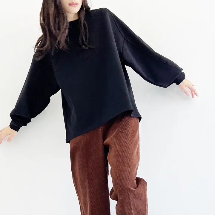 【日本製】2重織ストレッチジャージ_コクーン袖プルオーバー ブラック