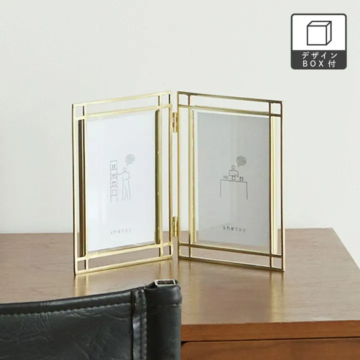ホテルライクなアウトラインのダブルフォトフレーム Lサイズ GL(ゴールド)