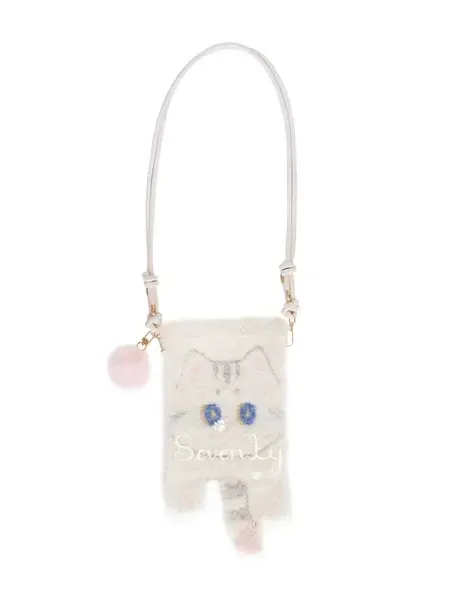 「秋冬新作」MEWJIオリジナル ふわふわ猫ちゃん かわいい トースト形 ショルダーバッグ 斜め掛けバッグ シルバー
