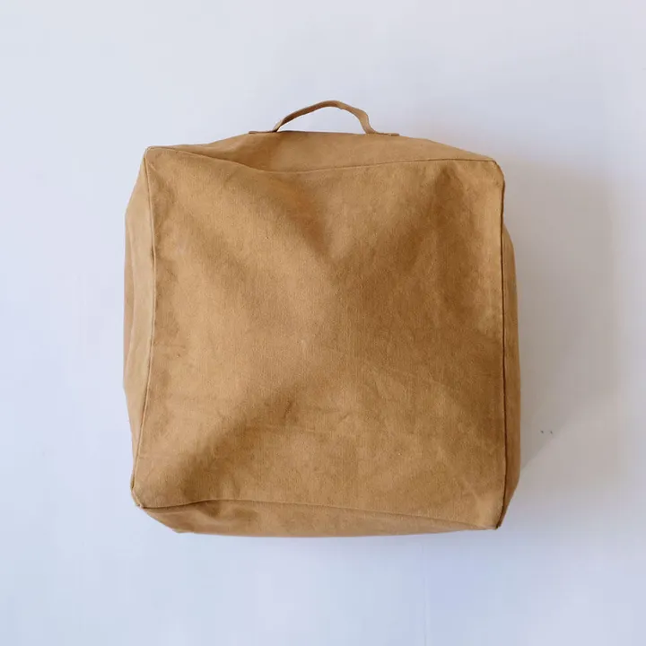オフシーズンの毛布やブランケットを中に収納するだけで、特等席になるフロアクッションカバー。 その日その時の気分に合わせて、好きな場所に持ち運んで使ってもらえるように付けた持ち手もポイントです。