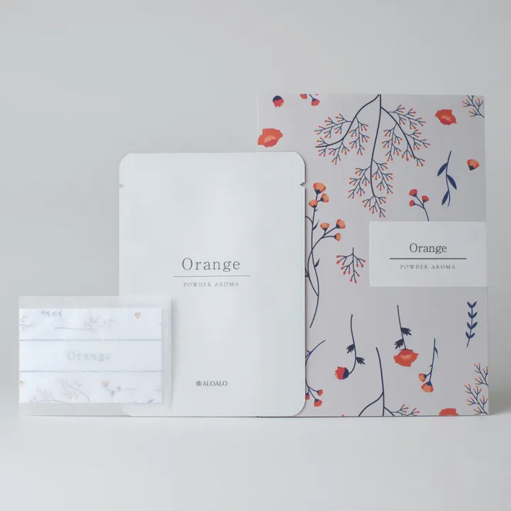 誰もが知っているミカンの香り アロマ業界初粉末アロマ「POWDER AROMA」をシート状に加工、アルミ袋で密封した商品で精油を最後の1滴まで有効に使用した商品です。 器具不用で袋を開封するだけの簡単アロマ、サシェや匂い袋の様にご使用ください。 アルミ袋を開封しない限り芳香しない袋入り商品で、在庫管理もしやすくなりました。 プチギフトにも人気の商品です。【精油詳細】以下の精油を粉末加工しています。 学名:Citrus sinensis 原産国:ブラジル 抽出方法/部位:低温圧搾法/果皮 ※原産国は、予告なしに変更になる場合があります。