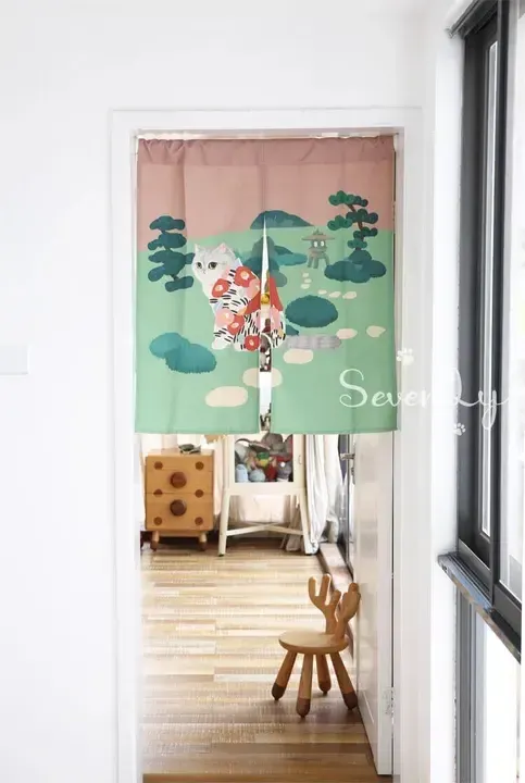 人気【在庫特価】パンチフリー のれん 猫 富士山『MEWJIミャオジ』和 麻 80*90cm 2色展開☆インテリア |花がら浴衣