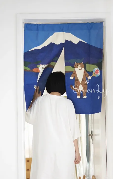 人気【在庫特価】パンチフリー のれん 猫 富士山『MEWJIミャオジ』和 麻 80*90cm 2色展開☆インテリア |※色選べる可(発注時チャットにて欄にてご連絡ください) 5点セット