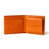 ーーーオーソドックスな作りの二つ折り財布 オーソドックスな設計でビジネスシーンにも普段使いにも最適な二つ折り財布。厳選されたイタリア製牛革ショルダーは使うほどに艶が増し、風合いが出てきます。経年変化(エイジング)を楽しみたい方におすすめです。 ーーーお財布の機能について マチ付き小銭入れが1か所、カードが4枚収納でフリーポケット2、札ポケット2、お尻のポケットなどにサッと入るサイズ。 カードを横に4枚収納でき札入れが二か所あるのでお札の入れ分けやレシートを入れにも便利です。 ーーー素材について 厳選されたイタリア製牛革ショルダーを使用。牛革の中でも良質なショルダー部分に鞣しの段階でオイルを含ませていますので丈夫で経年変化を楽しめます。 ーーーブランドBOX入りでギフトにも最適 いつも頑張っている自分へのご褒美として、または大切な方への贈り物としても。 商品は一つ一つブランドBOXにお入れいたします。 ーーアイテム詳細 [サイズ] H:94 W:112 D:23 [機能] カード×4 コインポケット×1 フリーポケット×2 札入れポケット×2 [カラー] オレンジ/ネイビーブルー ※掲載商品の色味は出来る限り実物の色味に近づけておりますが、ご利用のパソコン、スマートフォン、モニター環境によって、画像の色味が異なって見える場合がございます。予めご了承下さいませ。 [素材] イタリア産牛革ショルダー/国産牛革スムース