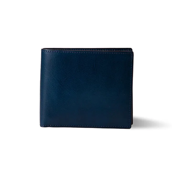 ーーーオーソドックスな作りの二つ折り財布 オーソドックスな設計でビジネスシーンにも普段使いにも最適な二つ折り財布。厳選されたイタリア製牛革ショルダーは使うほどに艶が増し、風合いが出てきます。経年変化(エイジング)を楽しみたい方におすすめです。 ーーーお財布の機能について マチ付き小銭入れが1か所、カードが4枚収納でフリーポケット2、札ポケット2、お尻のポケットなどにサッと入るサイズ。 カードを横に4枚収納でき札入れが二か所あるのでお札の入れ分けやレシートを入れにも便利です。 ーーー素材について 厳選されたイタリア製牛革ショルダーを使用。牛革の中でも良質なショルダー部分に鞣しの段階でオイルを含ませていますので丈夫で経年変化を楽しめます。 ーーーブランドBOX入りでギフトにも最適 いつも頑張っている自分へのご褒美として、または大切な方への贈り物としても。 商品は一つ一つブランドBOXにお入れいたします。 ーーアイテム詳細 [サイズ] H:94 W:112 D:23 [機能] カード×4 コインポケット×1 フリーポケット×2 札入れポケット×2 [カラー] オレンジ/ネイビーブルー ※掲載商品の色味は出来る限り実物の色味に近づけておりますが、ご利用のパソコン、スマートフォン、モニター環境によって、画像の色味が異なって見える場合がございます。予めご了承下さいませ。 [素材] イタリア産牛革ショルダー/国産牛革スムース