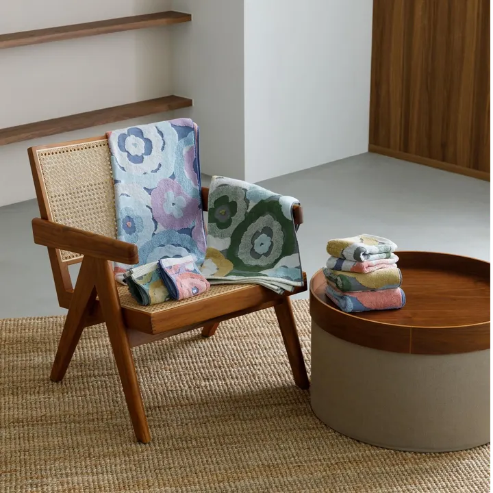 NEW【ふんわりと咲く北欧調カラーの花々 今治フェイスタオル】やわらかな風合いのジャガード織り モニ 6色の糸を組み合わせた、色とりどりの花々をデザインしました。 北欧調のカラーを組み合わせ、大輪の花々が咲き誇る、やさしい温もりを感じるタオルです。 無撚糸を使用し、ふわふわな肌触りに仕上げたため、生活の中でほっと一息つける安らぎを与えてくれる1枚です。 今治ブランド認定商品で、吸水性や毛羽落ち試験など厳しい基準をクリアした製品です。 ※JANシールの発行を希望される場合は、ご注文の際にメッセージをお願いいたします。 ※表示上の在庫がない場合や、100枚以上をご希望の場合はメッセージまたは電話にてお問合せください。 ※ギフトBOXでの対応も可能ですので、ご希望の場合はメッセージまたは電話にてお問い合わせください。(BOXは有料にて対応します。)